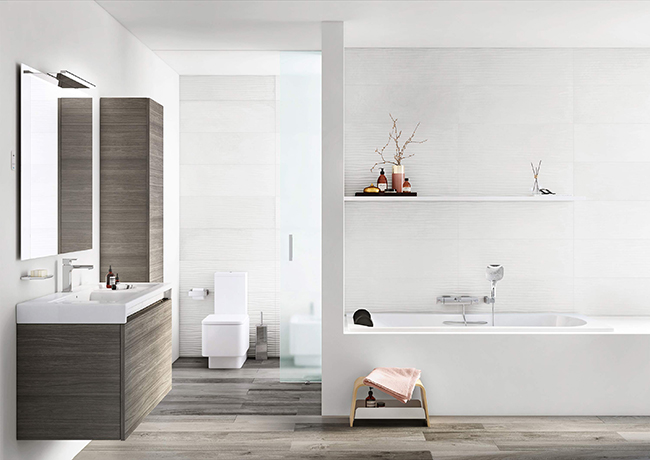 If you prefer a modern bath, experience the pleasant touch of Roca’s Solid Surface in joint-free surfaces with original profiles. While the Modo collection presents rectangular bathtubs in two dimensions and proposes the possibility of adding a drawer in Oak or Dark Mirror, Beyond opts for elegant curved lines in a Surfex® bath that invites you to dive into infinity.